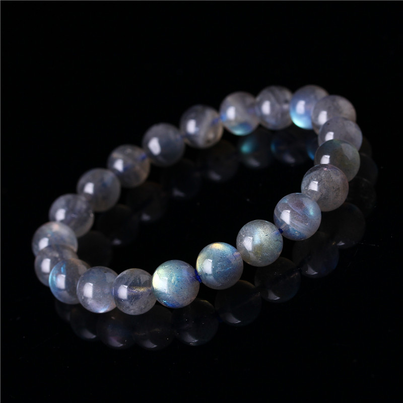 天然紫彩拉长石单圈手串蓝光紫光灰月光石手链水晶饰品情侣款配饰