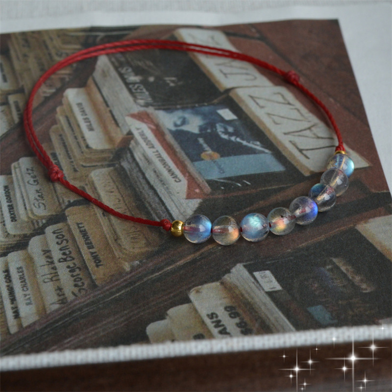 LUCKYLOTUS极细蓝彩光灰月光石手链水晶拉长石手串男女情侣包邮