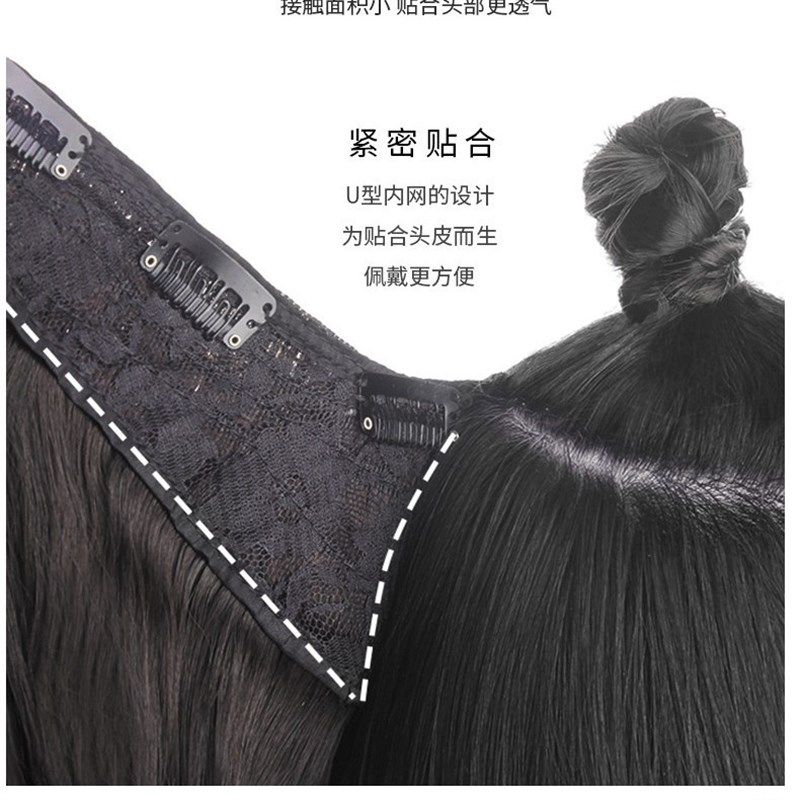接发片一片式假发片补长直发片无痕隐形三片式接长大波浪古风汉服