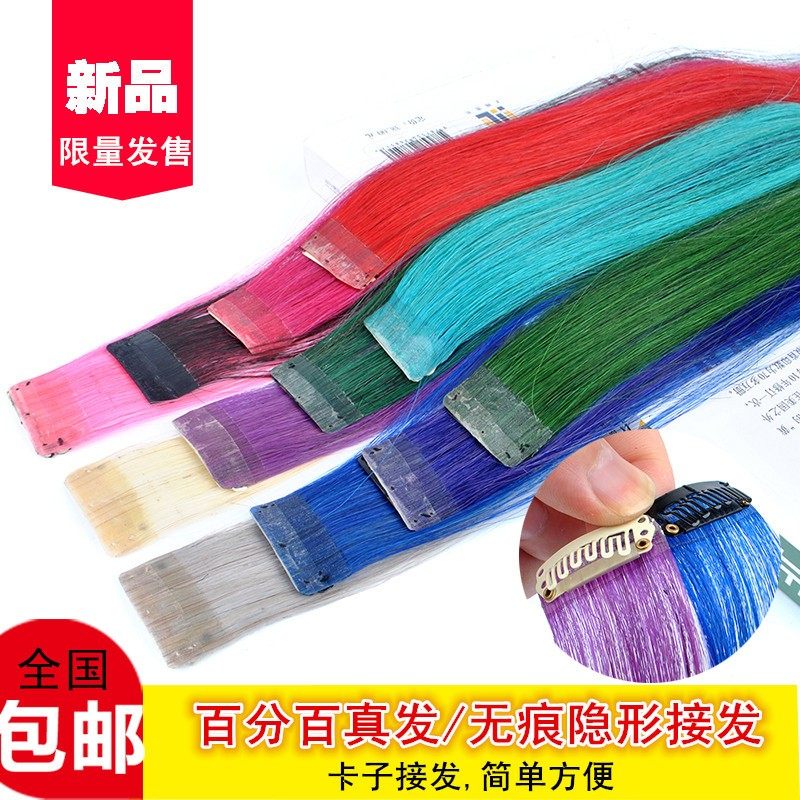 彩色假发片真发一片式接发束卡子发彩色发丝直发片接发片无痕接发