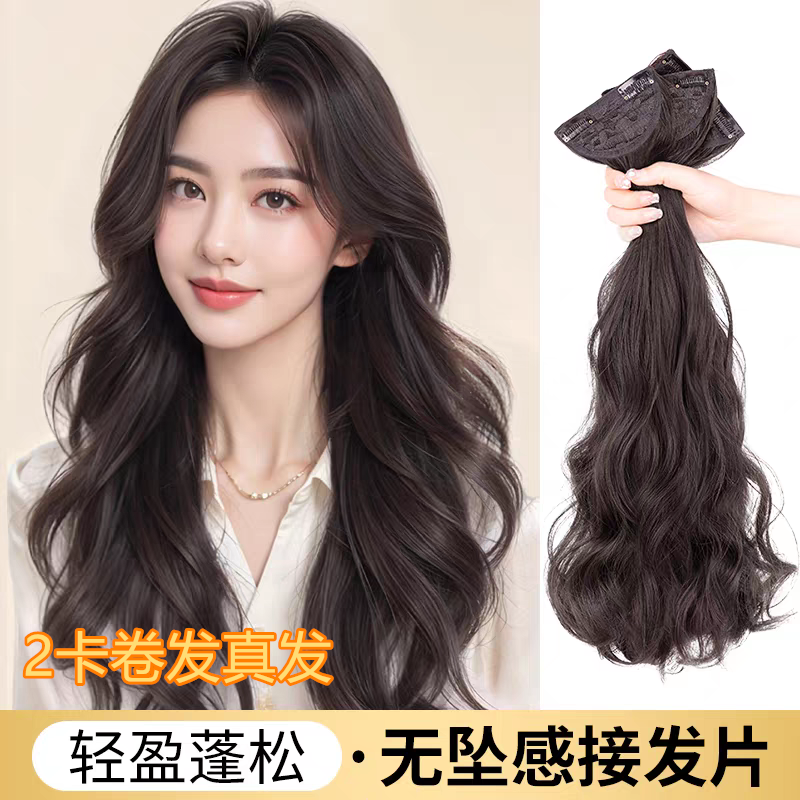 9度色接发片无痕接发片网红贴片真发发片假发片卷发一片式潮色9度