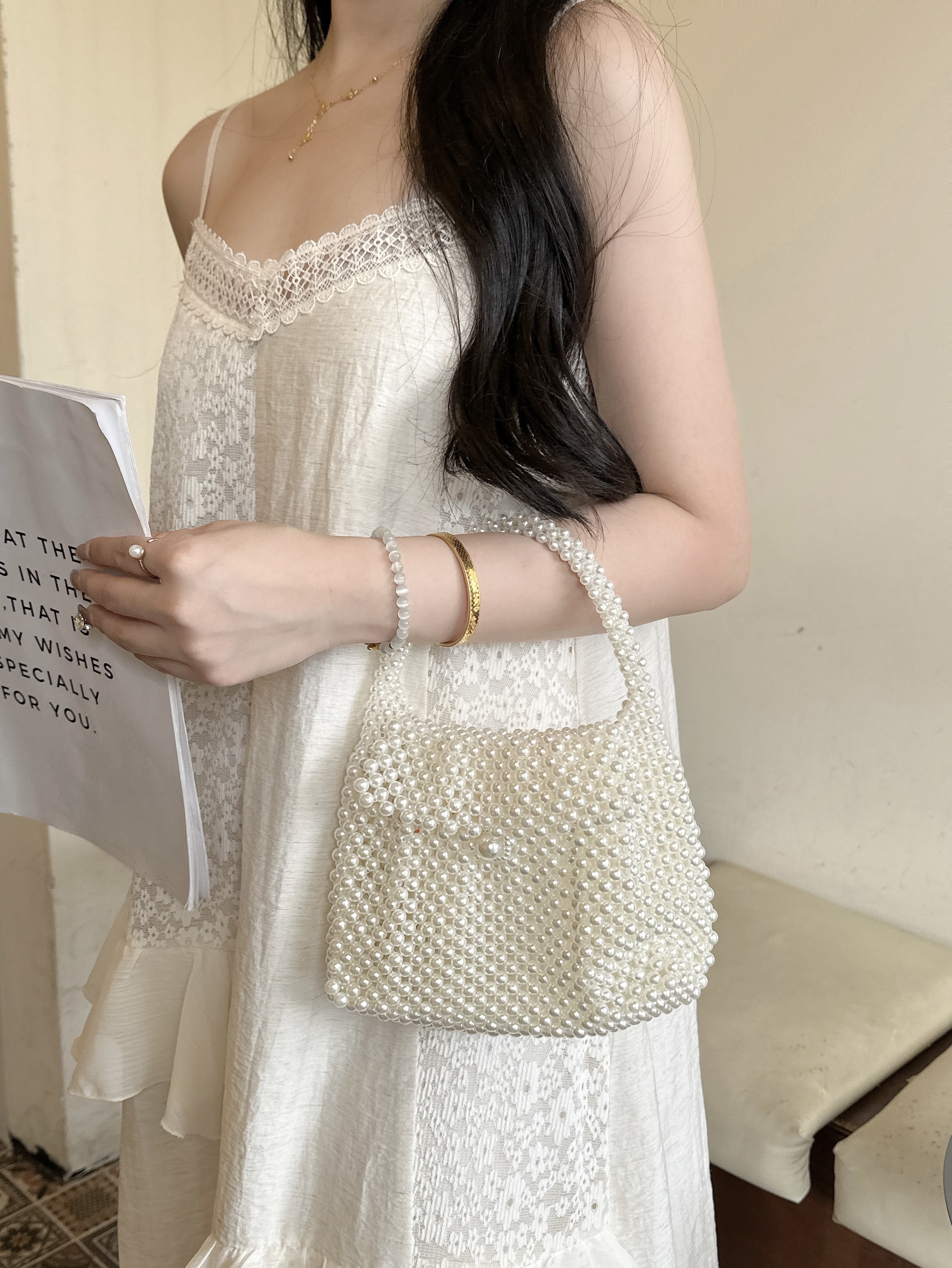 手工珍珠包成品串珠包mini手提包女包街拍小方包水桶包方盒斜跨包
