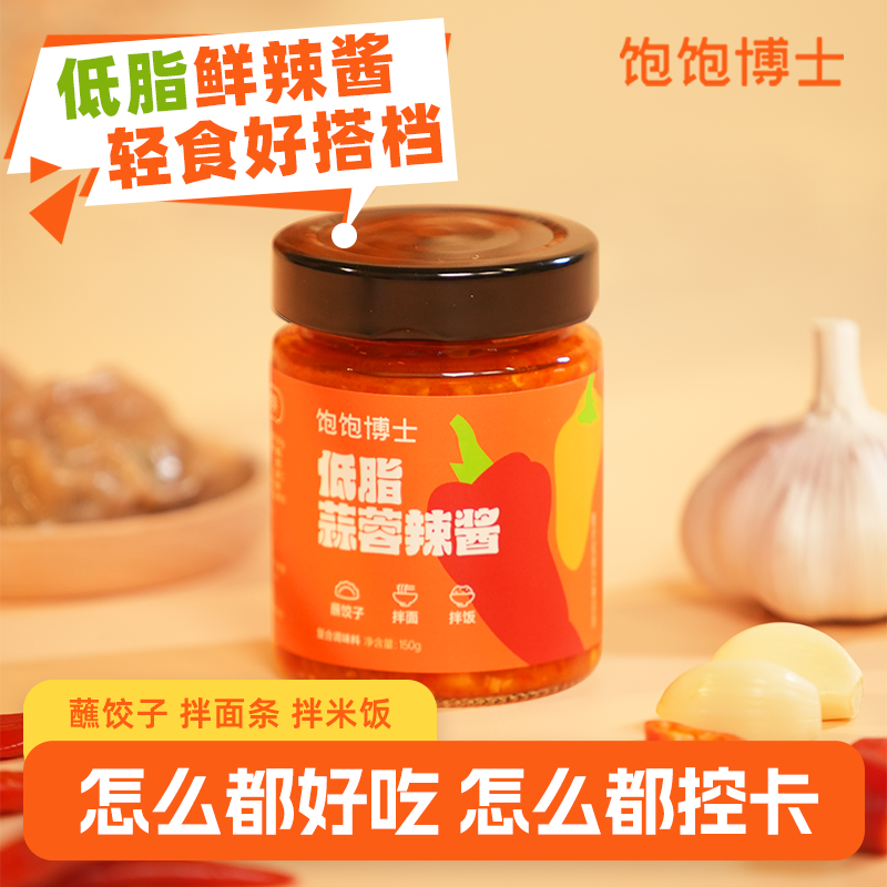 冷卡0脂辣椒酱蒜蓉下饭菜甜辣酱拌饭面脂肪健身轻食调味剁椒酱料