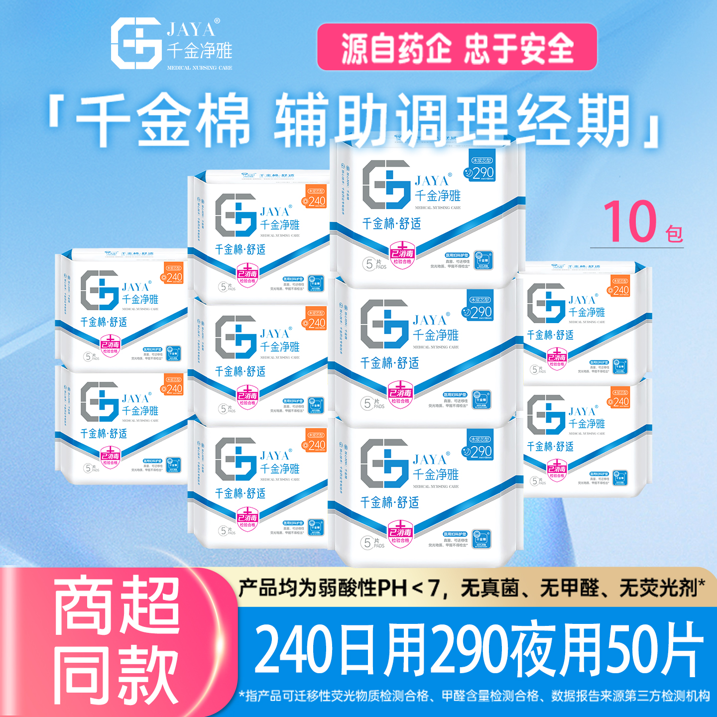 千金净雅卫生巾10包 240日用290夜用纯棉防过敏 超市同款械字正品