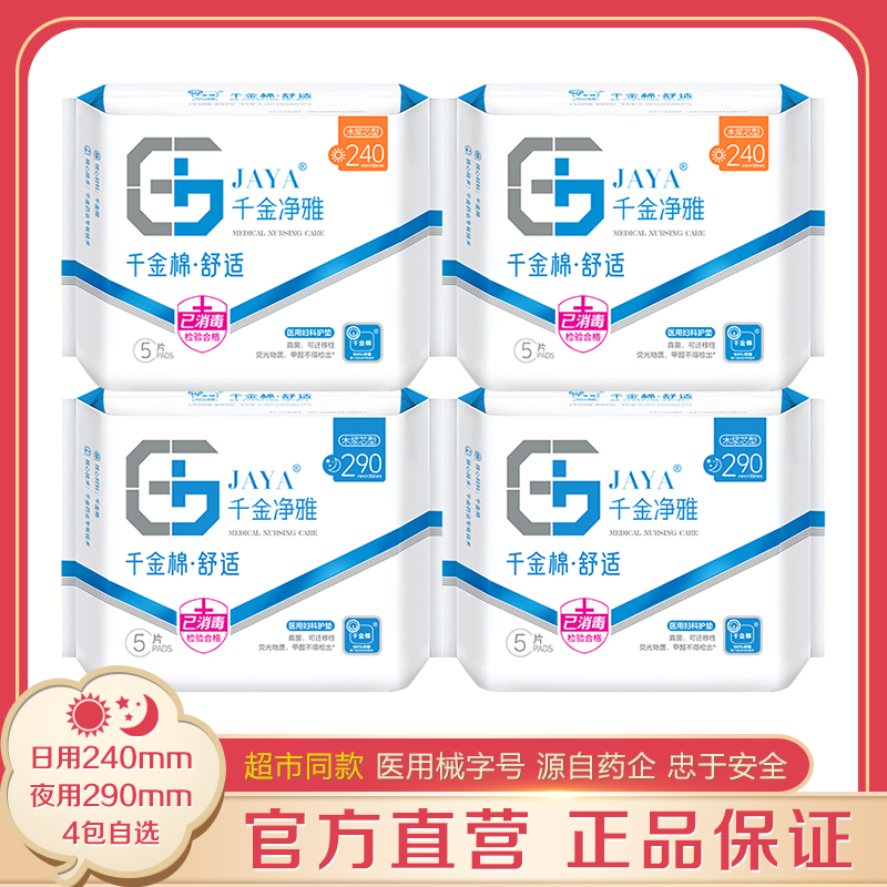 千金净雅卫生巾4包组合装 纯棉日用240mm夜用290mm械字号超市同款
