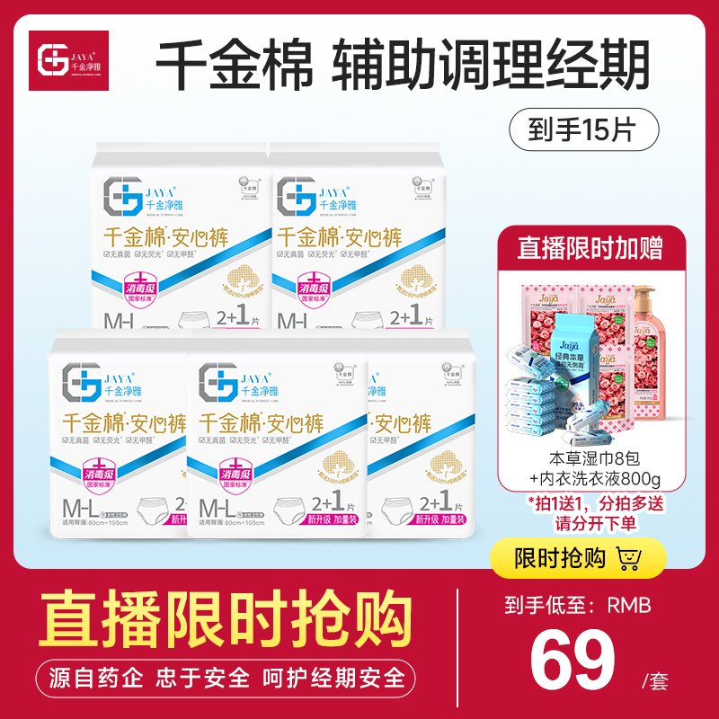 jaya千金净雅纯棉日用夜用卫生巾安睡裤瞬吸防漏安睡2包10片