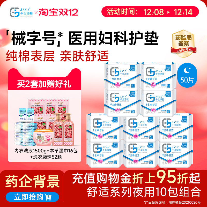 千金净雅卫生巾超薄械字号医用妇科护垫组合女290 *5盒超市同款