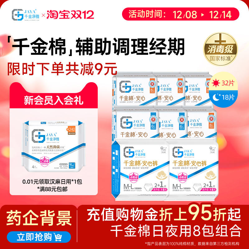 千金净雅卫生巾8包组合纯棉日用透气经期裤裤型卫生巾官方旗舰店