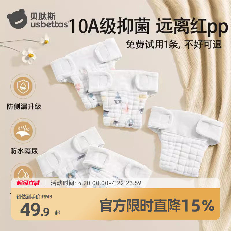 贝肽斯纱布尿布婴儿可洗纯棉新生宝宝专用透气芥子兜布戒子尿片裤