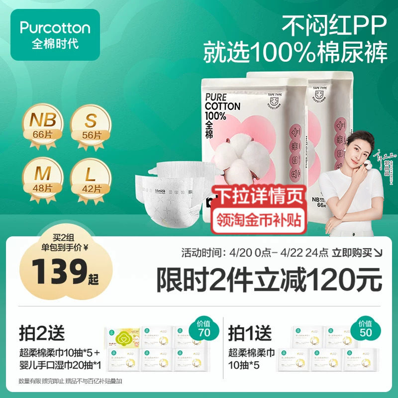 全棉时代新生儿纸尿裤超薄透气婴儿男女宝宝尿不湿尿片任选NB-3XL