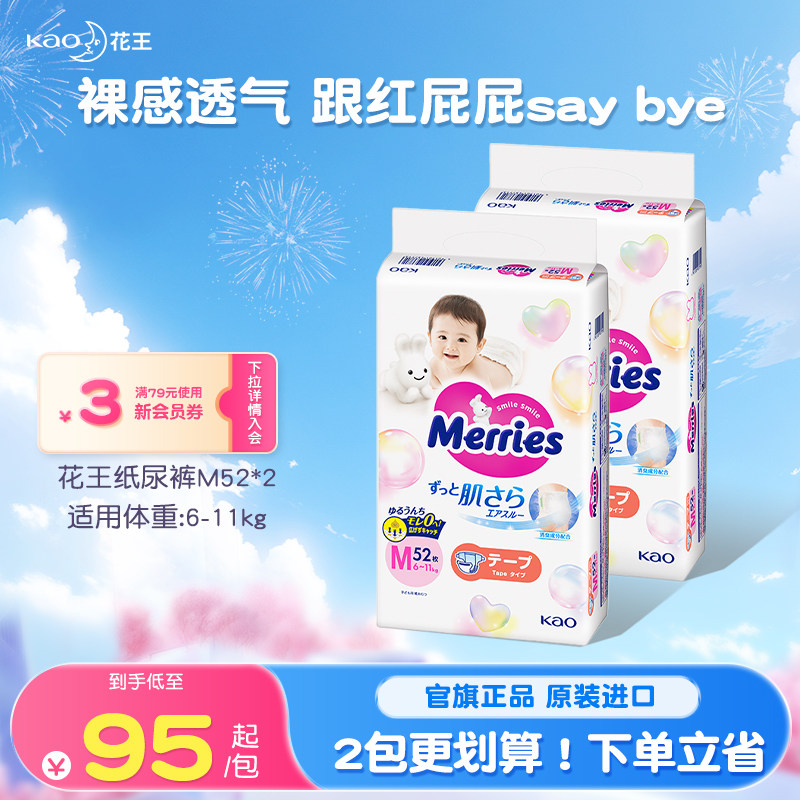 日本进口花王妙而舒纸尿裤S82片*2包超薄透气新生婴儿尿片尿不湿