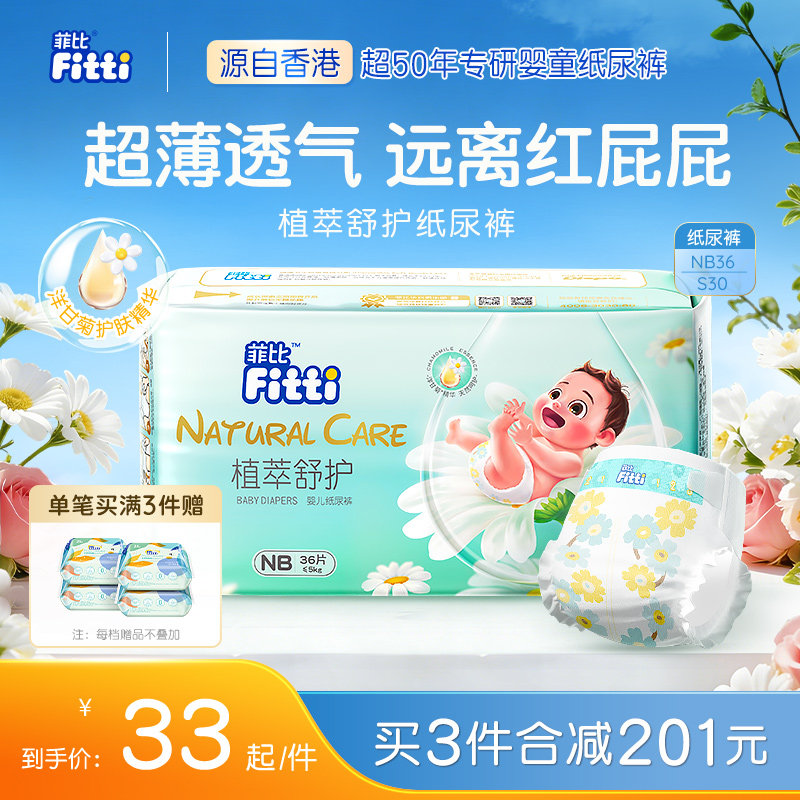 菲比植萃舒护新生儿纸尿裤NB/S码超薄柔软婴儿尿不湿敏感肌尿片