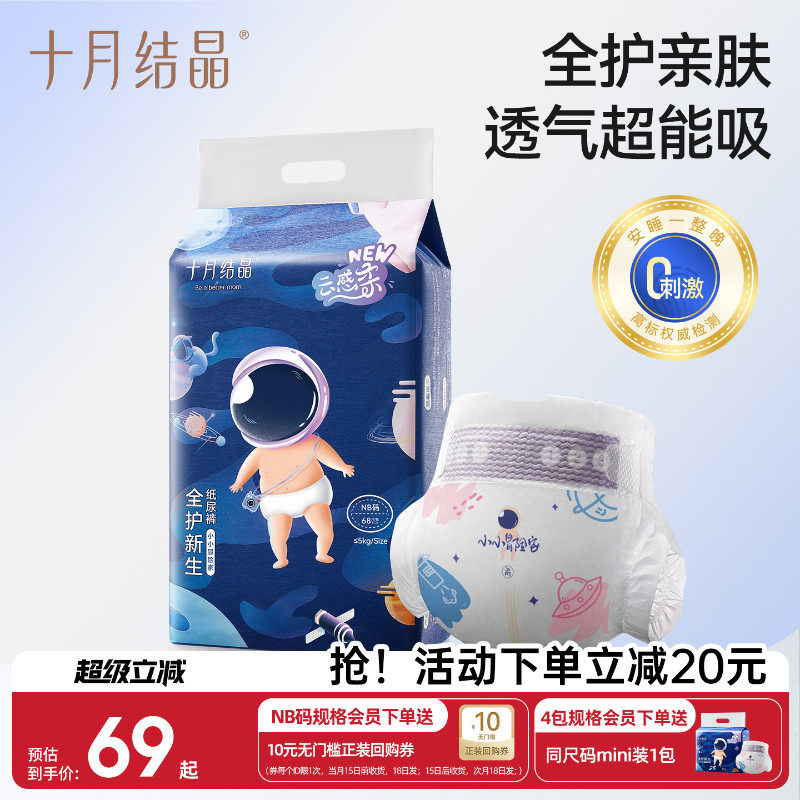十月结晶新生婴儿纸尿裤超薄透气超柔干爽宝宝亲肤尿不湿尿片nb码