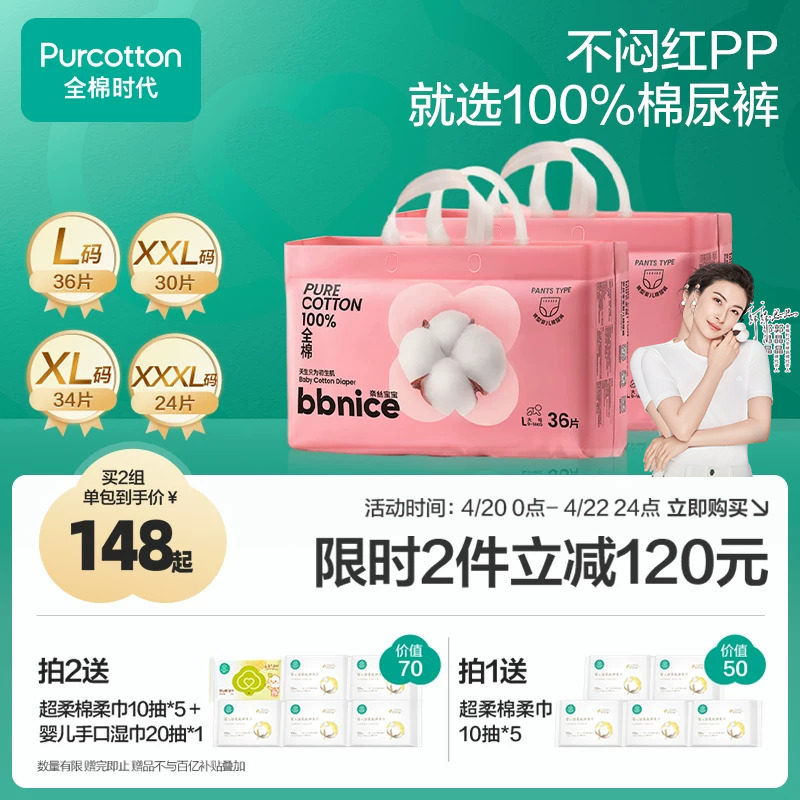 全棉时代新生儿纸尿裤拉拉裤超薄透气婴儿男女宝宝尿不湿尿片任选
