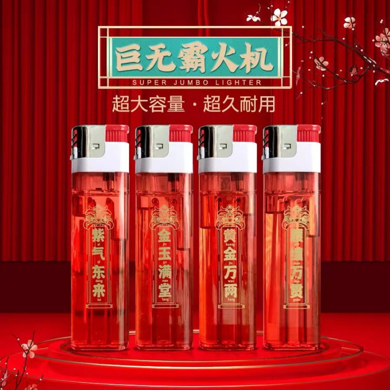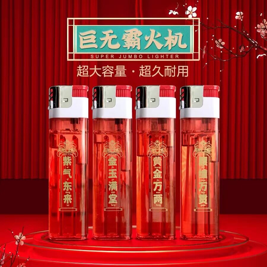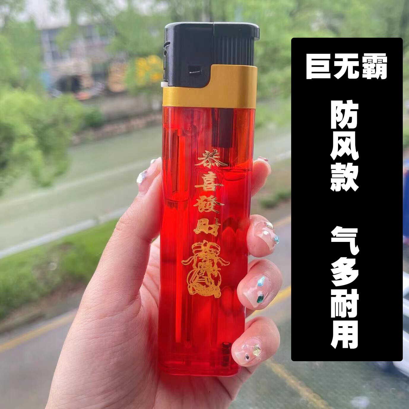 超大号透明红焰防风打火机加宽加大加长大容量耐用家用安全防爆款