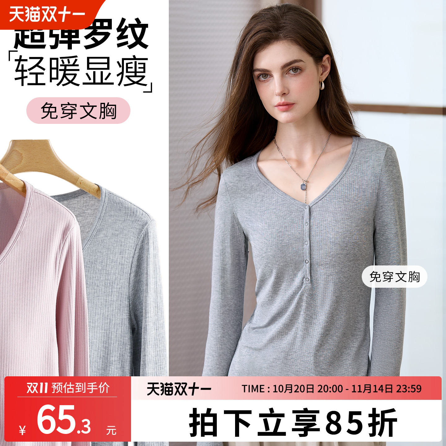 纯棉哺乳上衣秋衣孕妇喂奶睡衣春秋打底月子服外出带胸垫保暖内衣