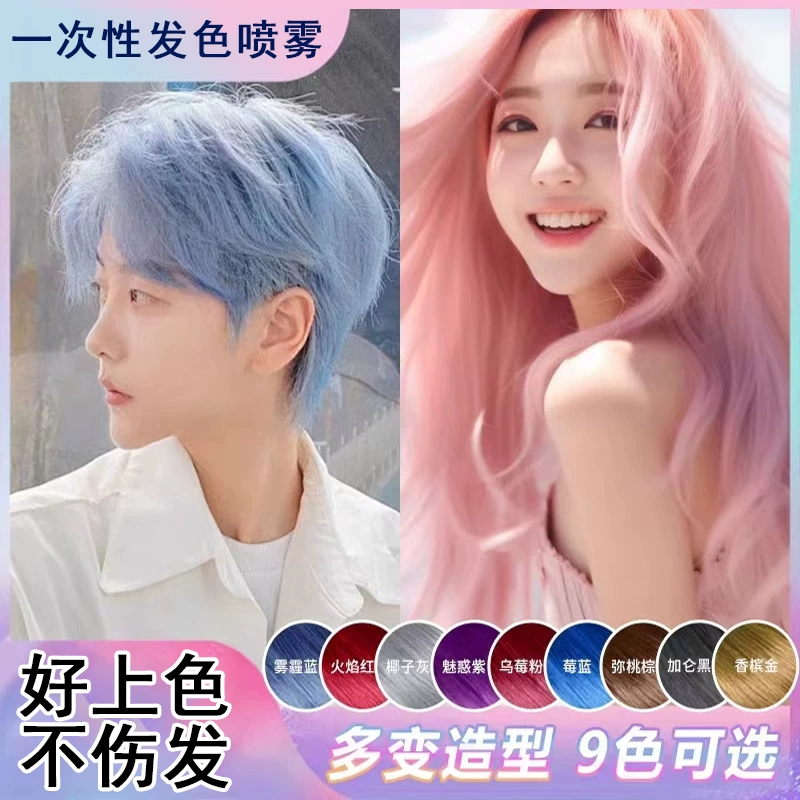 一次性染发喷雾彩色改发色可洗掉临时补色遮盖白不掉色发喷发胶男