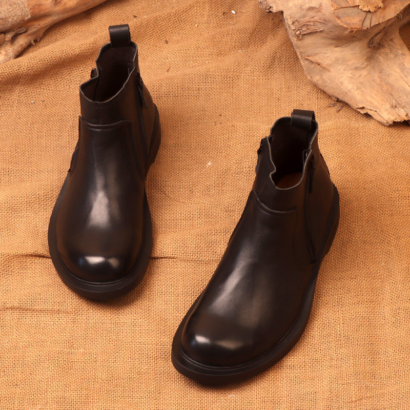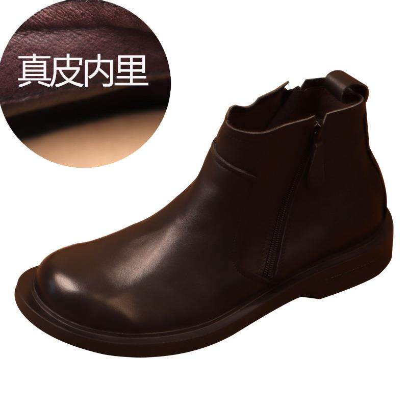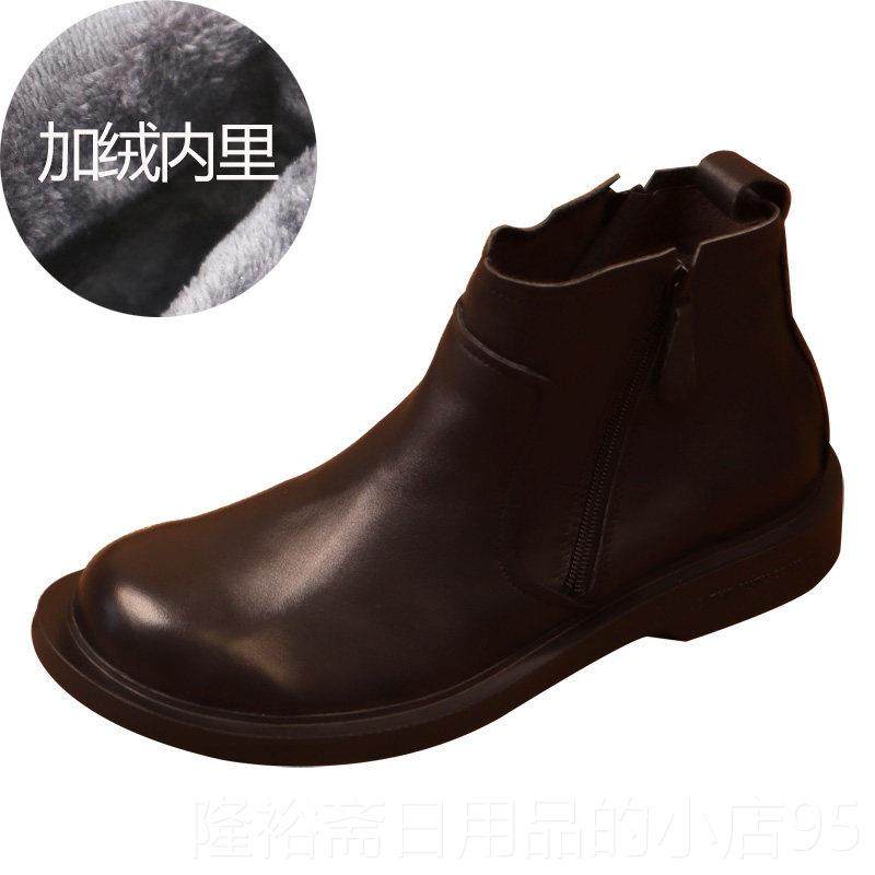 高档牛皮务休大闲纯高帮头皮鞋男手工大码真皮工装男鞋加商绒马丁