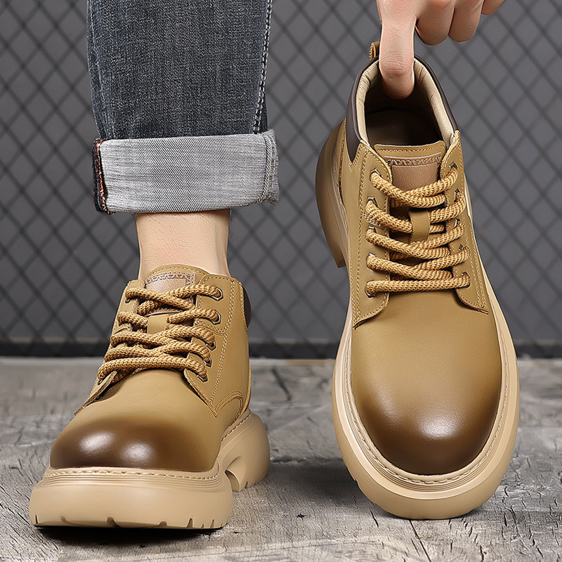 骆驼男鞋2025秋季新款低帮真皮马丁鞋厚底增高皮鞋男士时尚工装鞋