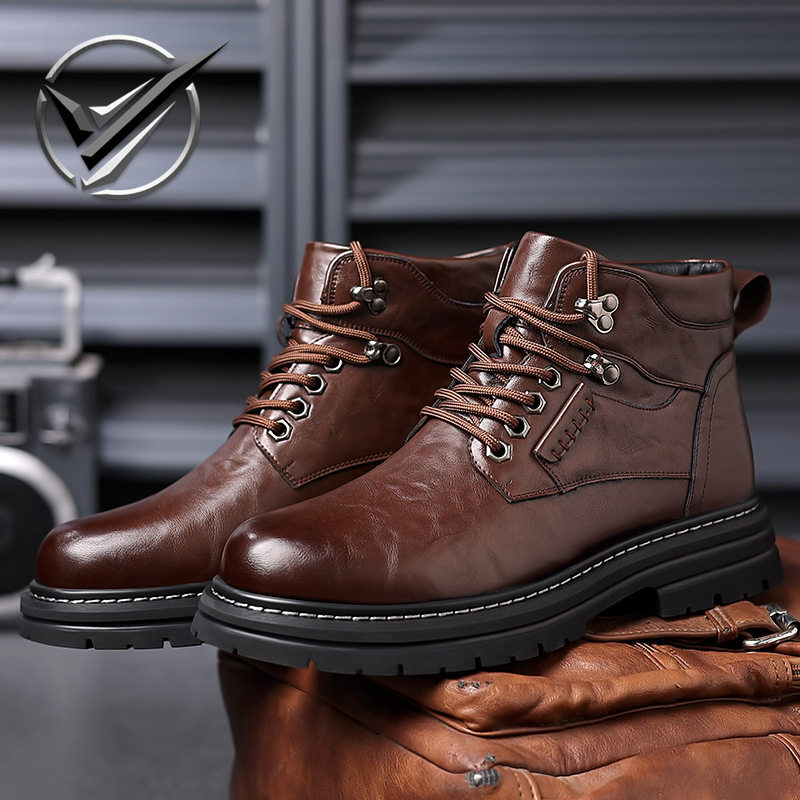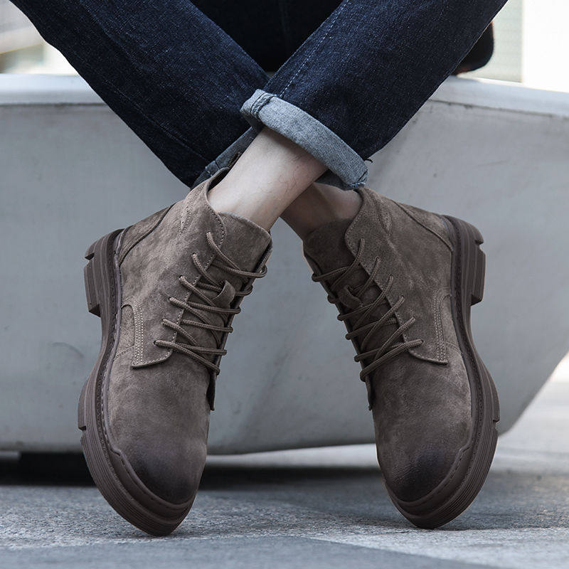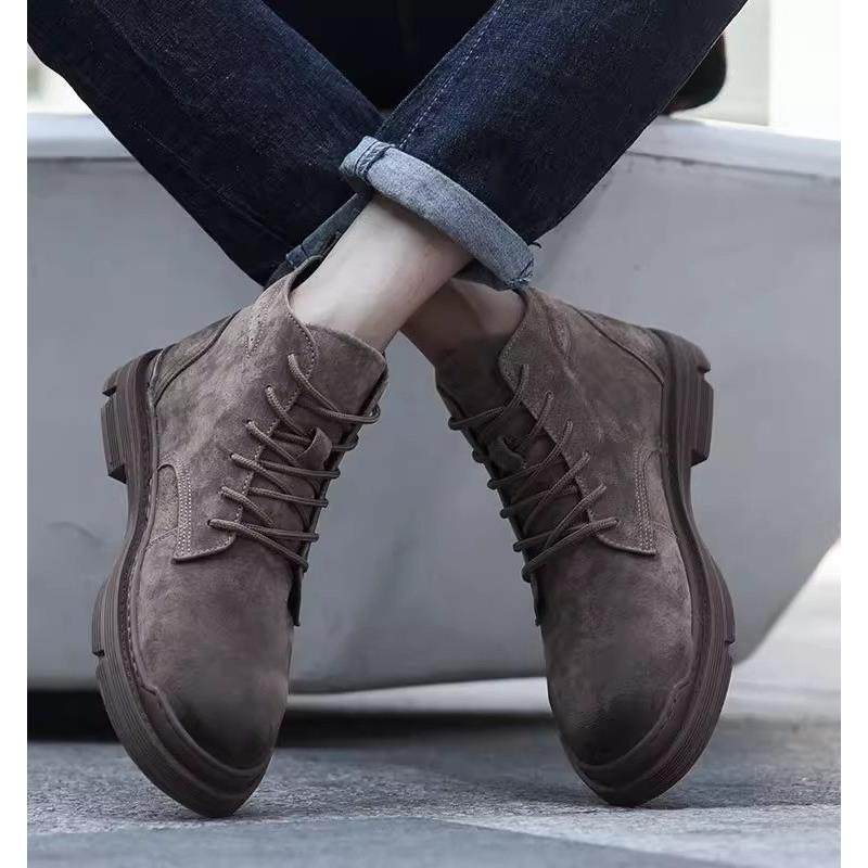 真皮工装男鞋2025新款秋冬季英伦复古高帮潮靴厚底增高休闲马丁靴