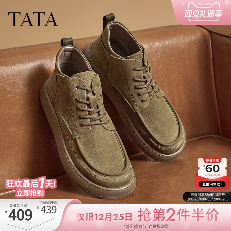 TATA他她复古棕色皮鞋男鞋运动休闲真皮高帮工装鞋马丁靴男士新款