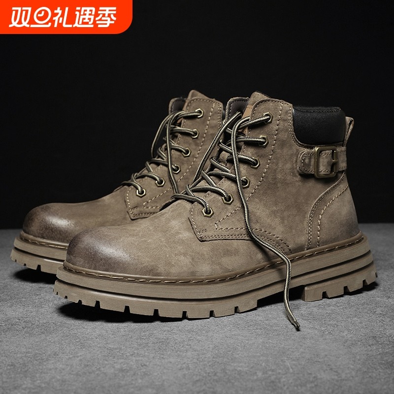 美式复古休闲户外登山鞋轻便男士新款做旧厚底老爹鞋真皮工装男鞋