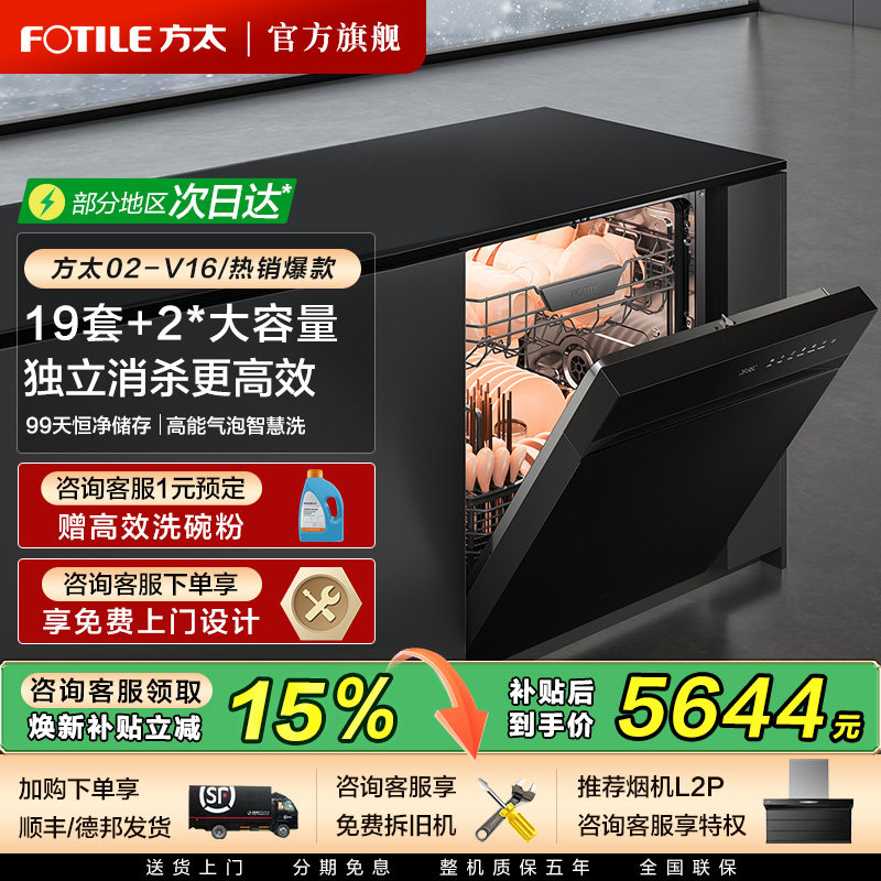 【新品】方太洗碗机嵌入式V16/MAX家用自动刷碗机19套官方旗舰店