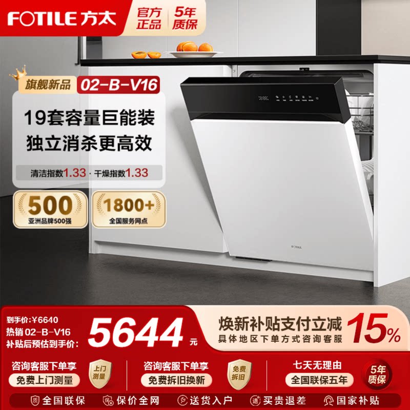 [新品]方太洗碗机02-B-V16嵌入式家用大容量全自动19套强劲去污