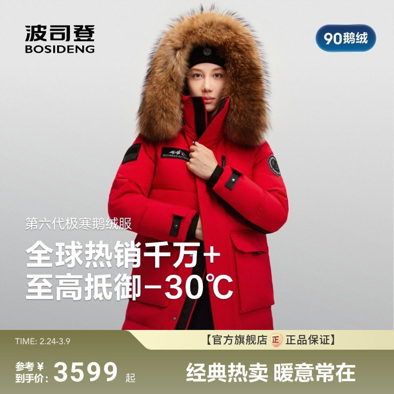 波司登极寒鹅绒大毛领女长款过膝羽绒服东北防寒新年红色加厚外套