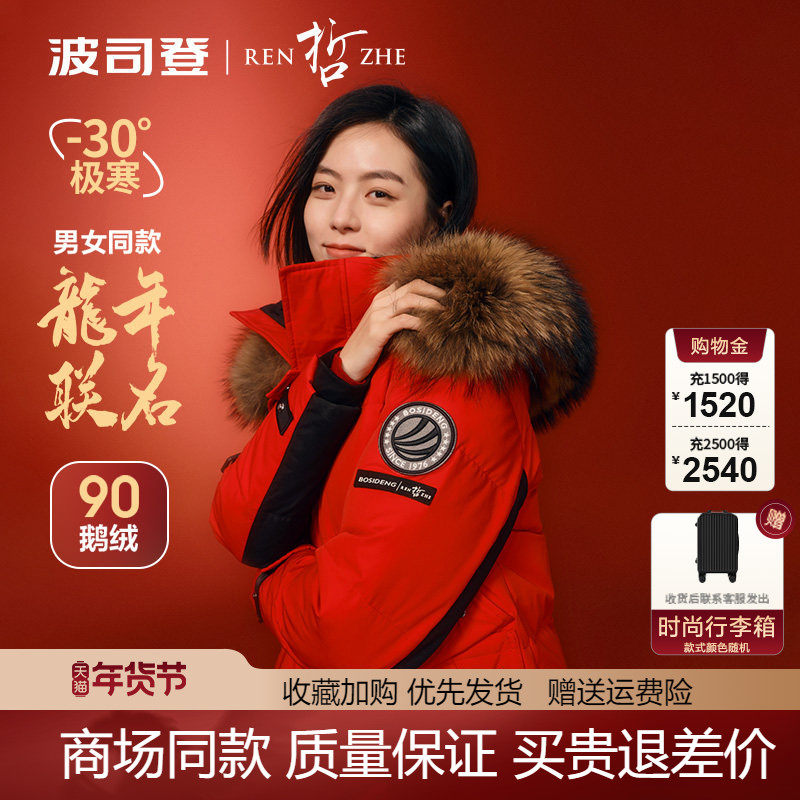 【新年红色】波司登极寒90鹅绒新款羽绒服女大毛领结婚过膝长款