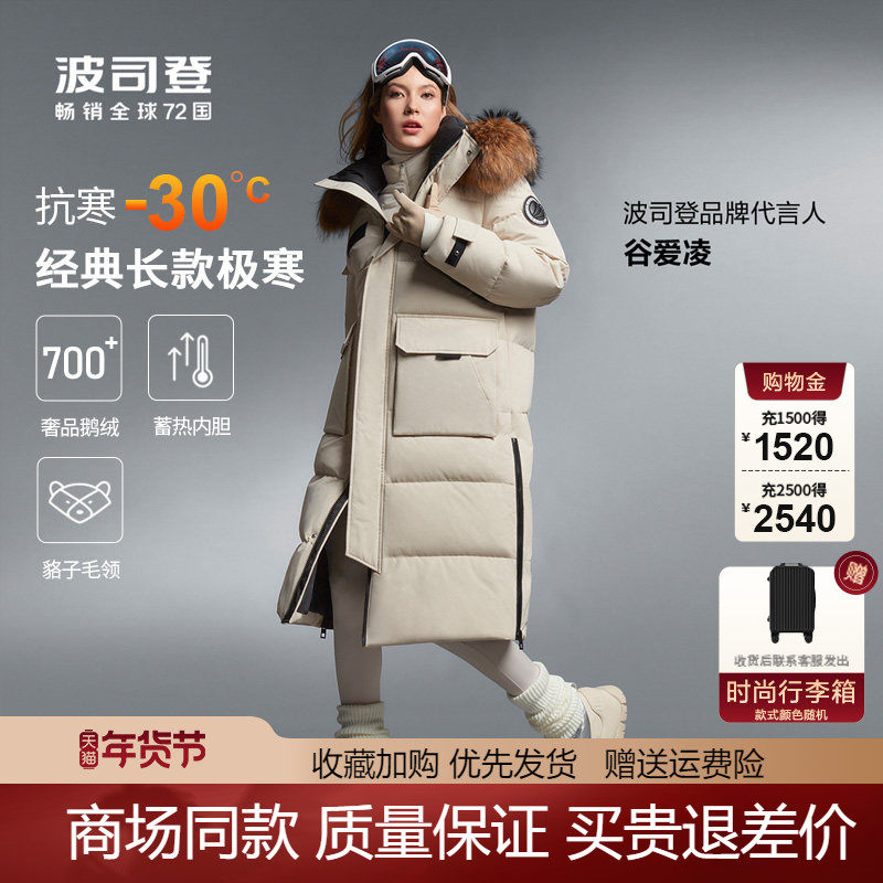 波司登明星同款女加厚过膝长款情侣款大毛领羽绒服工装极寒鹅绒服