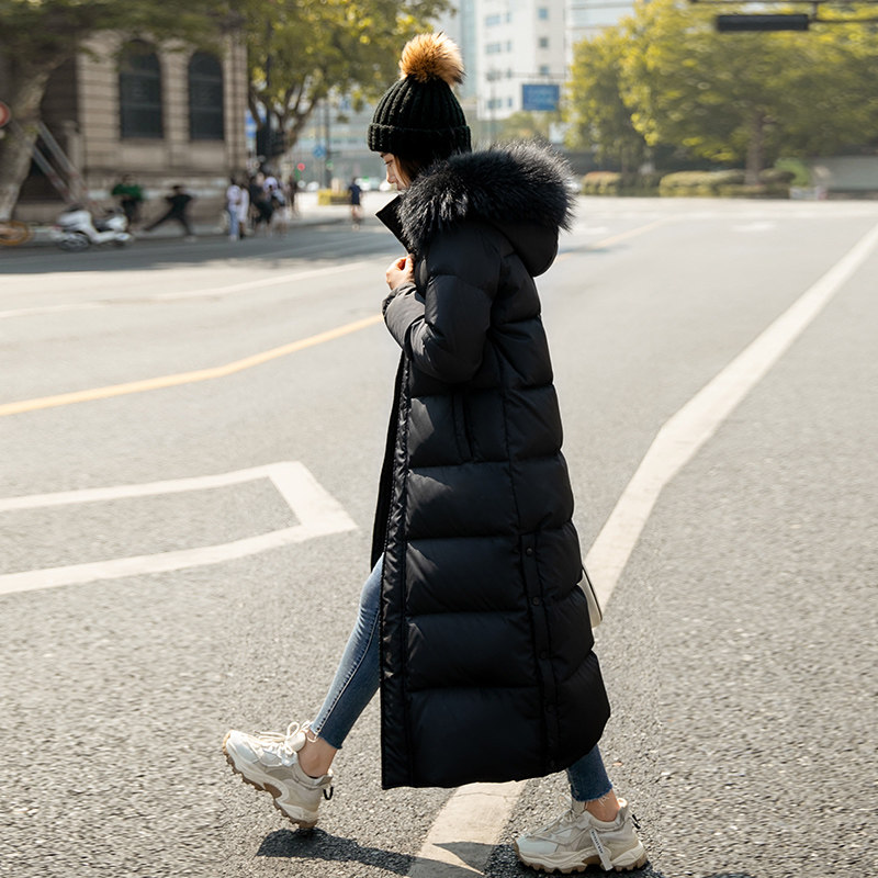 诗都奇加厚保暖羽绒服女超长外套大毛领加长款过膝抗寒奢华大码女