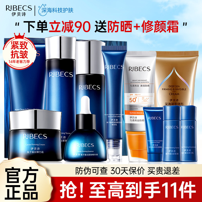 伊贝诗鱼子蛋白紧致抗皱套装补水保湿水乳女护肤品旗舰店官网正品