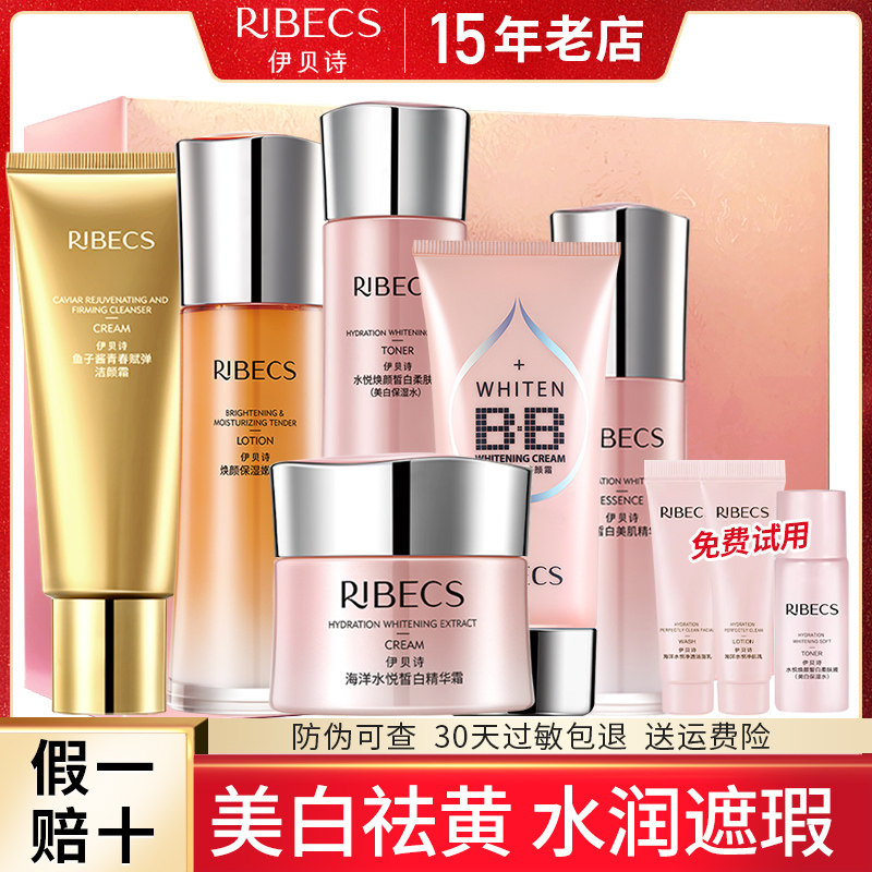 RIBeCS/伊贝诗美白淡斑六件套补水保湿套装提亮肤色礼盒官方旗舰