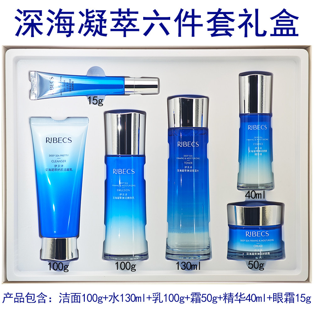 伊贝诗深海凝萃套装补水保湿提亮肤色毛孔洗面奶爽肤水乳霜护肤品