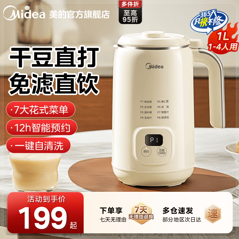 美的2025新款豆浆机家用全自动多功能破壁小型新款1L免煮旗舰正品