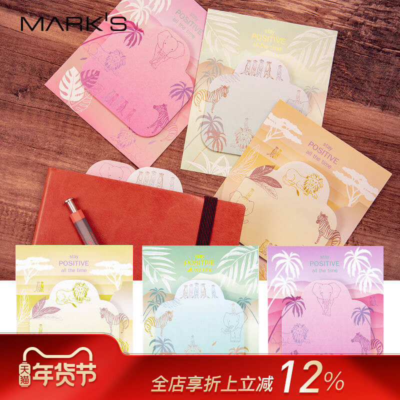 MARK'S 野生动物主题书签便利贴30张 背胶型创意设计办公留言备忘录待办事项便签贴