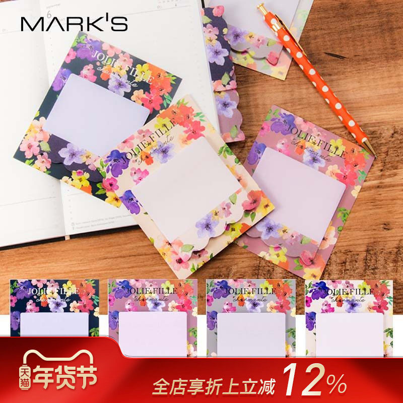 marks ZR系列花朵主题书签便利贴30张 背胶型创意设计办公留言备忘录待办事项便签贴