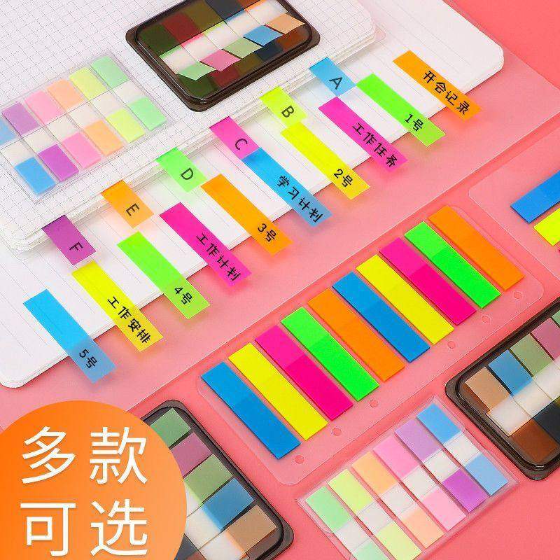 索引贴标签纸便签便利贴可书写标记小条塑料书签记号学生用透明指示页码荧光膜彩色网红纸粘性强n次分类纸质