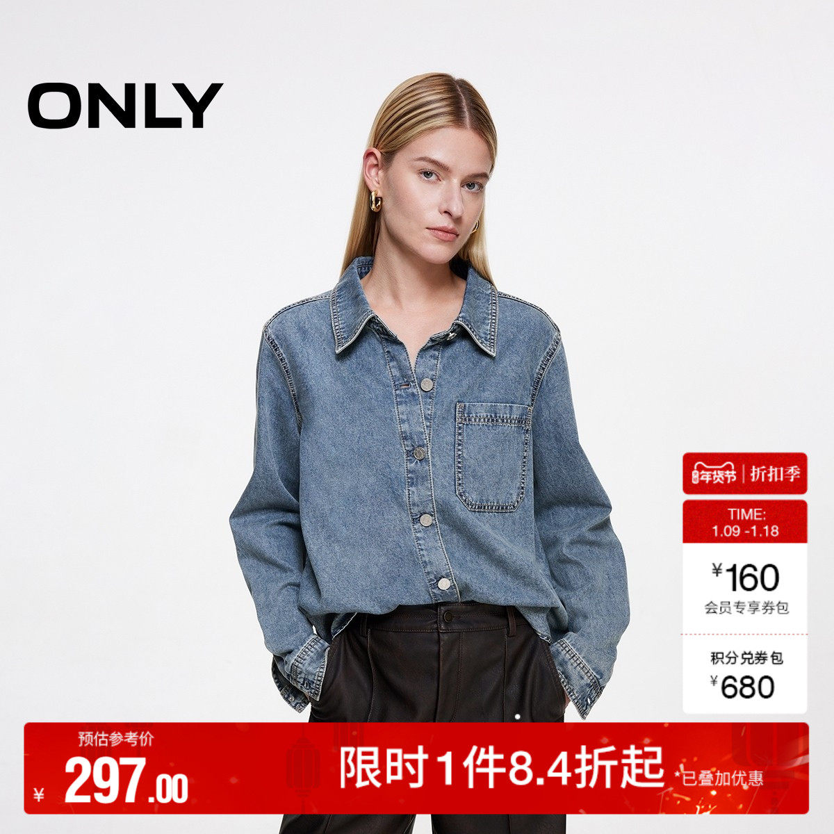 - 宽松牛仔衬衫