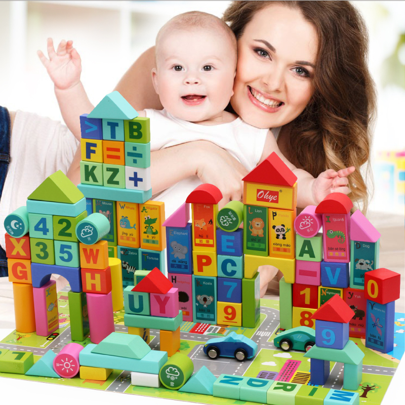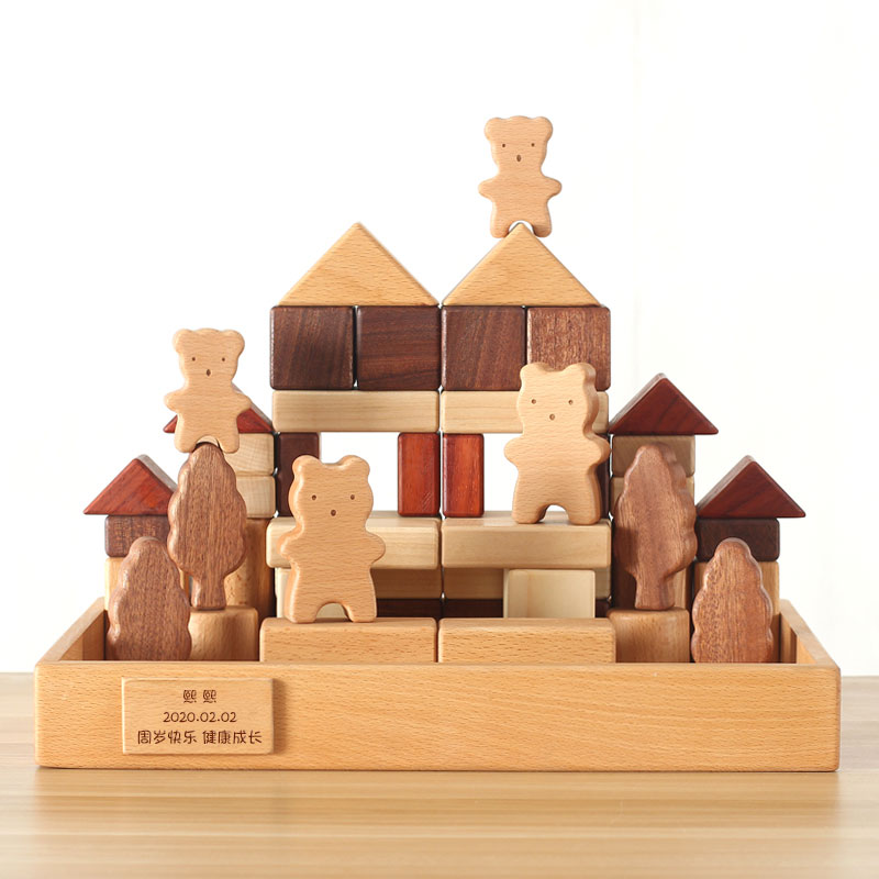 王子妈妈创意积木儿童拼搭榉木质婴儿1-2-3-6周岁益智玩具可啃咬