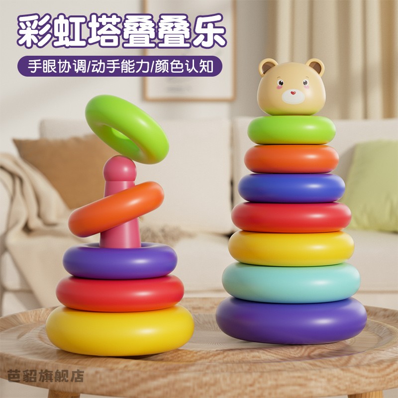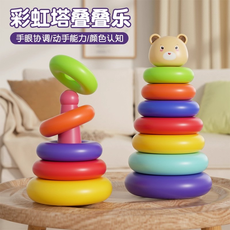 彩虹塔套圈积木叠叠乐蒙氏早教儿童益智玩具婴儿宝宝1一2周岁半用