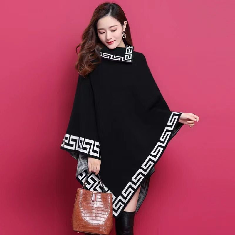秋装新款针织衫斗篷蝙蝠袖毛衣女百搭披肩秋冬外套女上衣韩版宽松