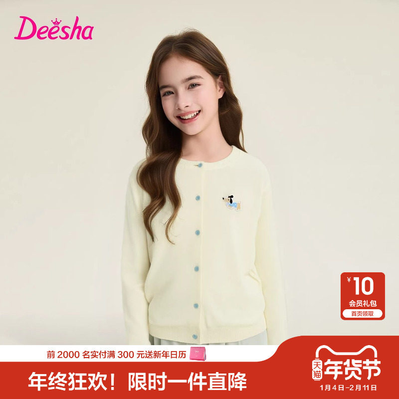 笛莎官方旗舰童装女童针织开衫春季新款儿童外套大童上衣宝宝毛衣