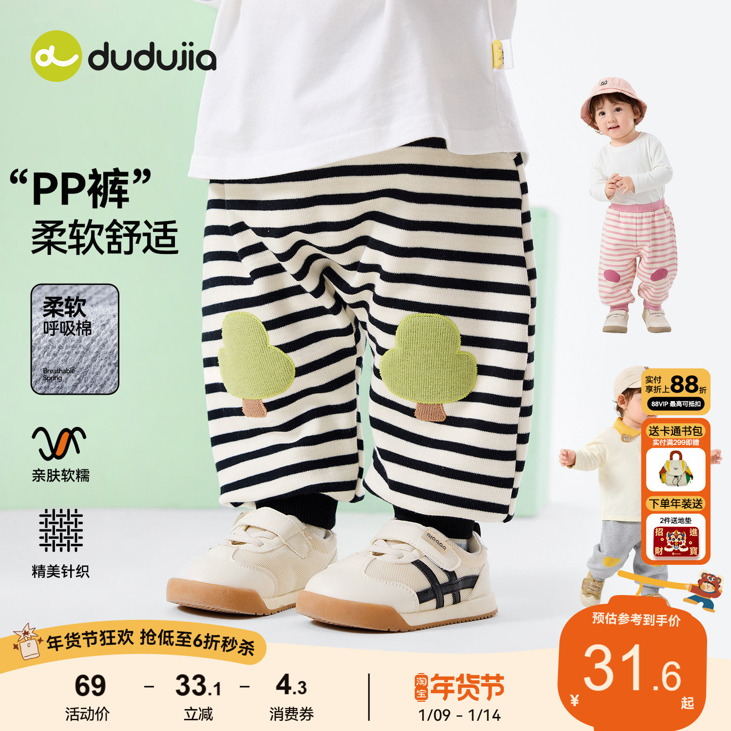 嘟嘟家儿童裤子宝宝pp裤婴儿衣服女童春秋屁屁裤春季长裤男童童装