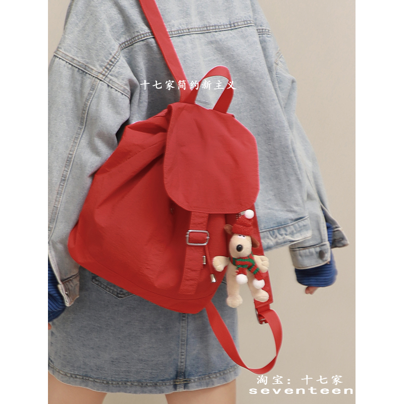 十七家日系休闲尼龙轻便双肩包文艺简约ins学生书包大容量背包潮