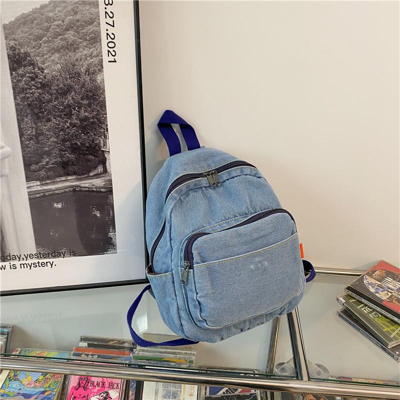 日系纯色帆布包女大学生森系时尚迷你双肩包文艺牛仔布旅行小背包