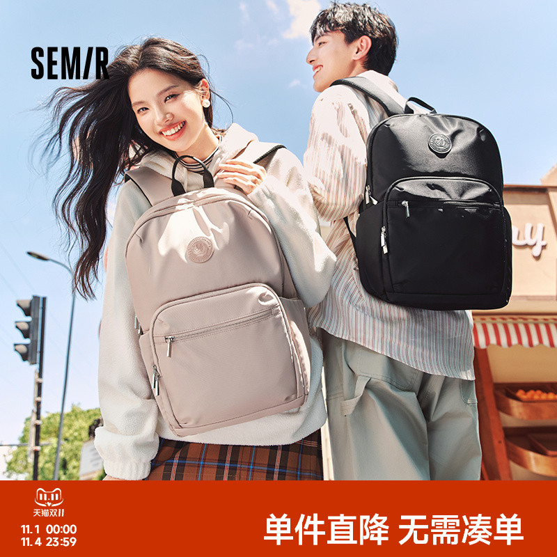 森马双肩包男2024新款大容量电脑包文艺情侣学生书包商务背包简约
