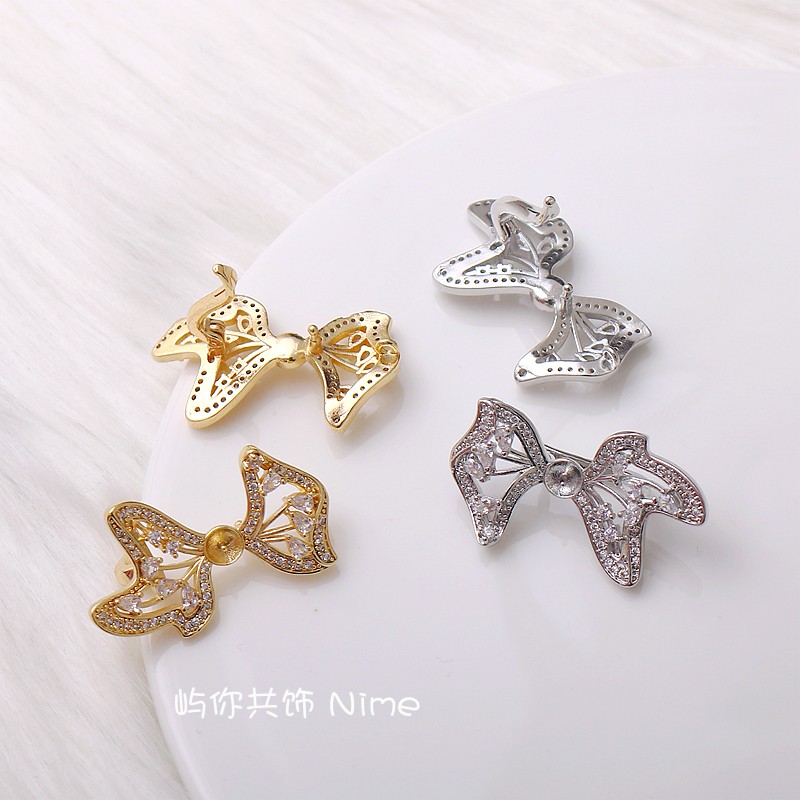 14k包金保色领结蝴蝶结锆石白K项链手链链接收尾扣diy配件