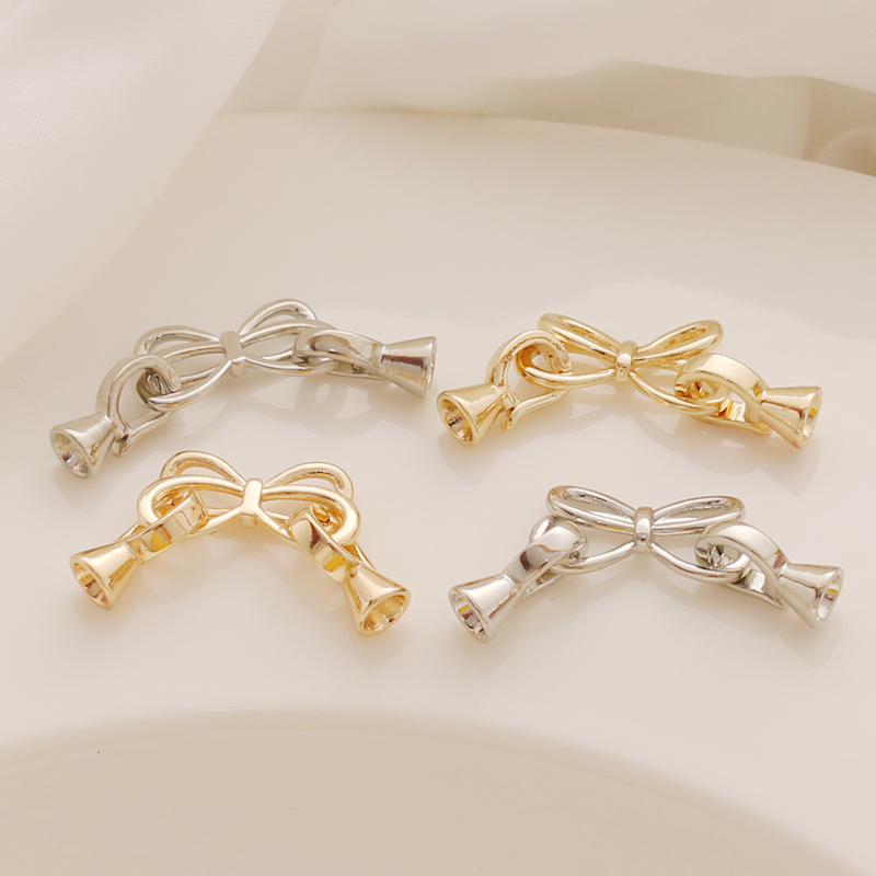 14K包金保色白K项链手链扣10*19mm蝴蝶结双扣头链接扣diy饰品配件